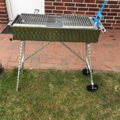 Гриль из нержавеющей стали со складными ножками из нержавеющей стали + колеса и 2 ящиками для золы с системой вентиляции.